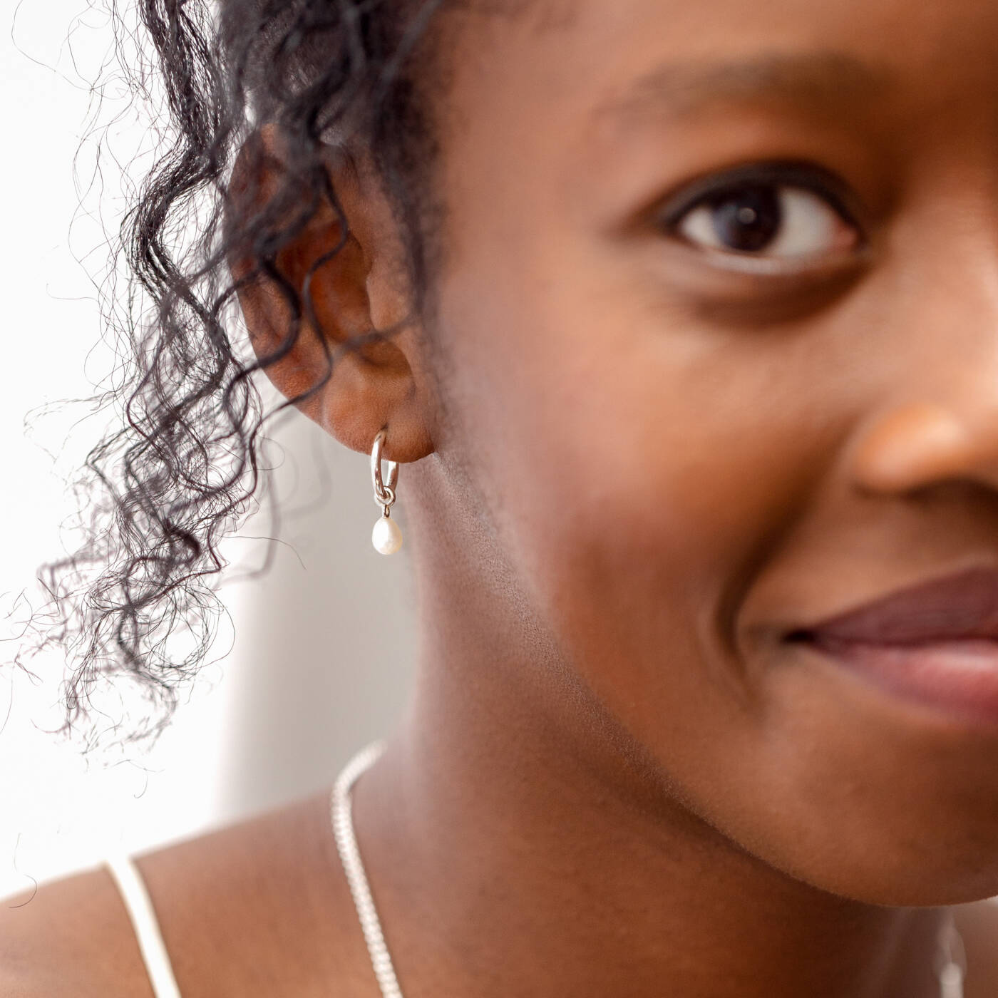 Treasure Pearl Hoops Silver in the group Earrings / Pearl Earrings at SCANDINAVIAN JEWELRY DESIGN (ES1210)